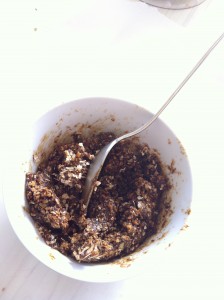 Mix the nuts, dates, tahini and blackstrap molasses and stir well.