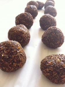 Looking for a way to increase your magnesium levels? This recipe is my answer – they are designed to be a rich source of magnesium, as well as the co-factors for magnesium (zinc, b vitamins and calcium). Fun and easy to make, they help to satisfy chocolate cravings, they balance blood sugar levels (good source of protein, good fats and complex carbohydrates and fibre), so why not give them a go? Make a big batch and freeze some, or a small batch and keep them in the fridge. If you can resist eating them all within the first few days, they will last about 4-5 days in the fridge.