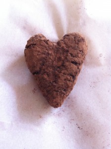 Roll them into balls with your hands, then roll in the cocoa powder. Lightly tap to get rid of the excess powder. From here you can mould them into different shapes (I made a heart because I love magnesium, haha). You can refridgerate them or freeze them (let them defrost for about half an hour before eating).