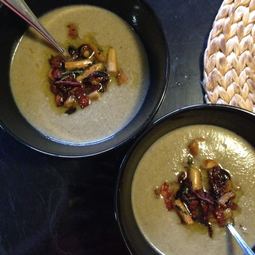 - Sprinkle with some finely chopped parsley or thyme, the reserved mushrooms, some sautéed bacon, add some extra cracked pepper if you like and enjoy!
