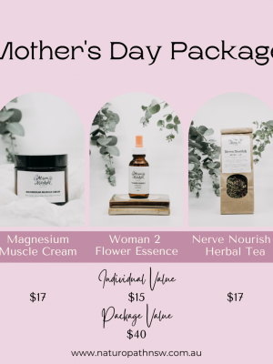 Bundles Default sorting Sort by popularity Sort by latest Sort by price: low to high Sort by price: high to low Mother’s Day Package Bundle $15.00 – $18.70 Mother’s Day Gift Bundle includes: 1. Nerve Nourish Herbal Tea 2. Woman 2- Flower Essence 3. Magnesium Muscle Cream 6og... View products