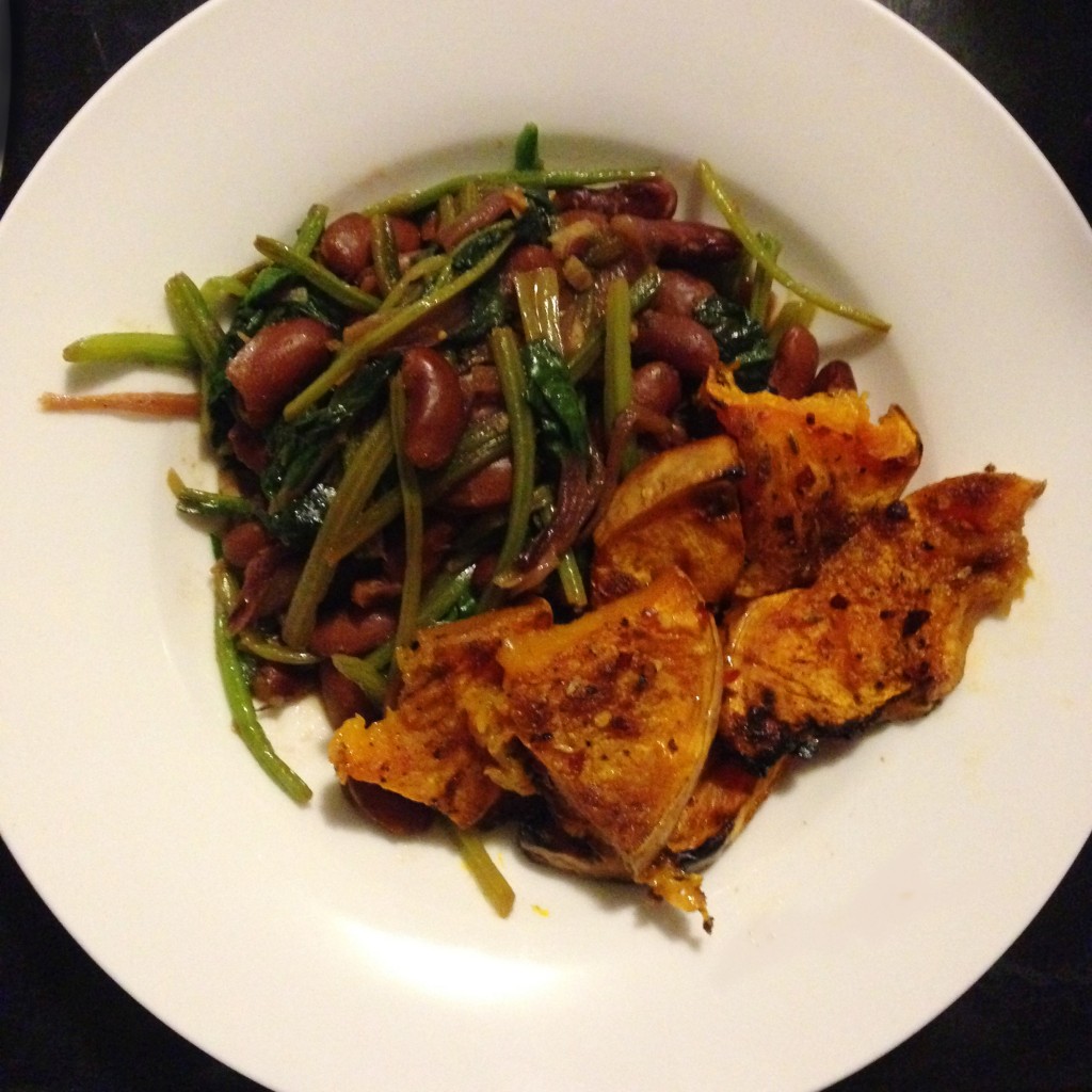 Roast Cinnamon Pumpkin with Beans and Spinach