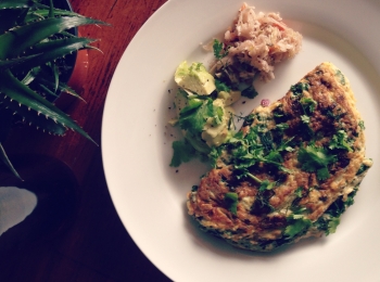 [fb_button] ~serves 1~ Ingredients ½ cup kale leaves separated from the stems, both finely chopped ½ cup baby spinach, roughly chopped ¼ red onion, finely diced 1 handful flatleaf parsley…