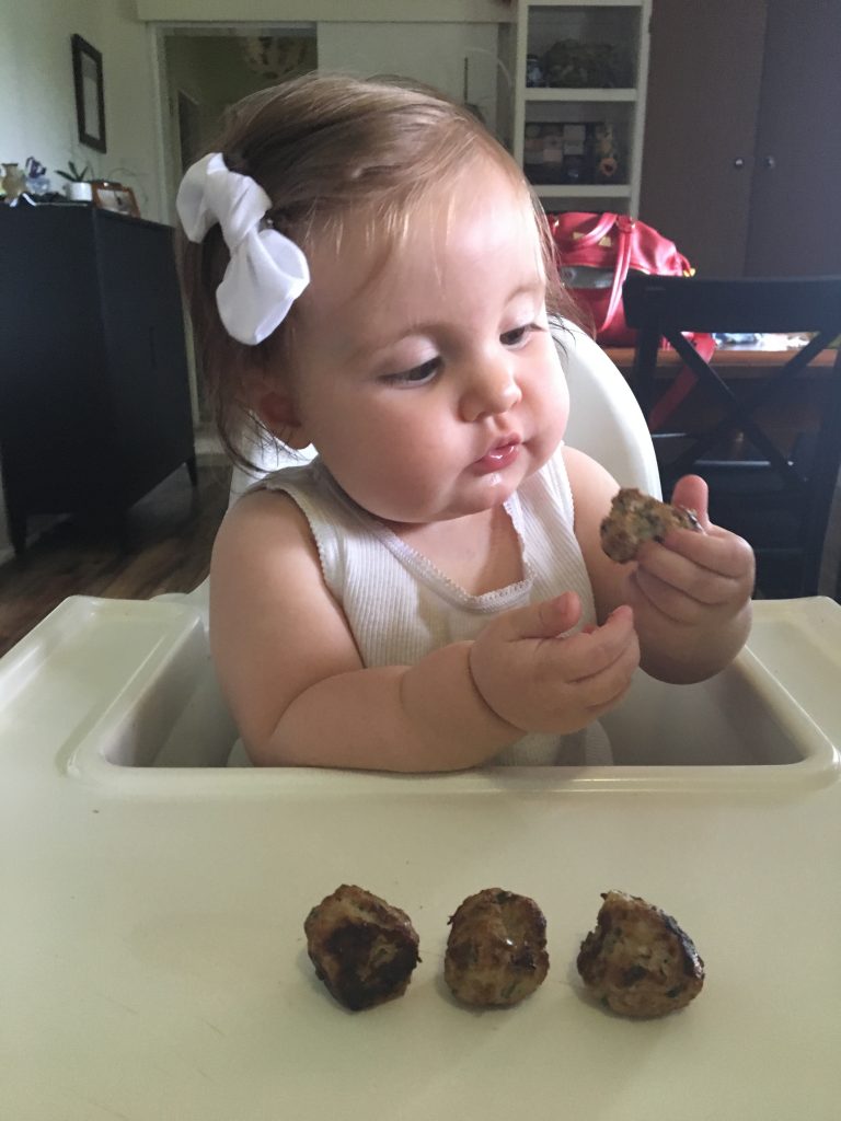 Meatballs are such an easy food for toddlers who like to feed themselves, and you can get creative with the ingredients to give kiddo lots of variety. You can sneak veggies in them, which is good if you’ve got a fussy eater, but still handy if you’ve got a little one who doesn’t have teeth to chew up spinach.